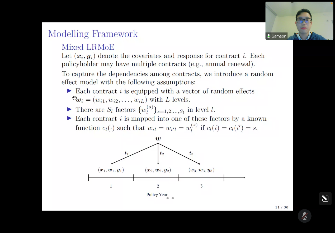 本次报告的题目为“A Posteriori Risk Classification and Ratemaking with Random Effects in the Mixture-of-Experts Model”。在非寿险产品的承保和定价中,保险公司必须利用投保人信息和索赔历史,以确保盈利能力和相匹配的风险管理。虽然投保人信息(如年龄和性别)反映了可观察的风险特征,但其索赔历史可能被视为一种不可测量和不可观察的风险因素,且不同投保人之间的风险因素可能会有很大差异。