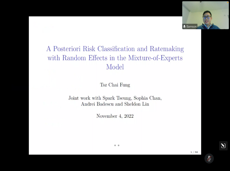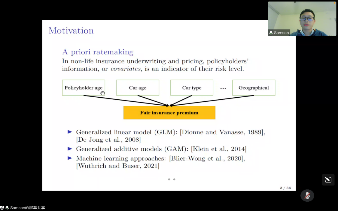 2022年11月4日上午9:30,应中国精算研究院池义春研究员邀请,乔治亚州立大学风险管理与保险系助理教授冯子齐(Tsz Chai Fung)博士在线上为新葡萄官网师生作了一场精彩的学术报告。