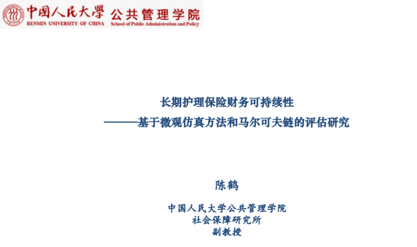 陈教授首先从长期护理保险(简称长护险)的定义、发展脉络等角度向我们介绍了长护险的发展现状;然后从财务可持续的角度向我们介绍了长护险在财务收支平衡方面遇到的挑战,并详细介绍了如何将微观仿真技术应用到长护险的财务支出方面。最后通过上饶市长护险实际运行数据对模型的有效性进行检验并对未来进行预测。