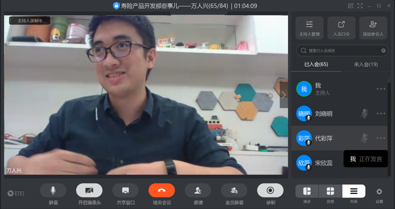 2020年6月5日晚,中国精算研究院廖朴副教授邀请到工银安盛人寿保险有限公司精算部高级定价经理万人兴先生,在钉钉平台进行主题为“保险产品开发那些事儿”的精算实务线上讲座。此次讲座为新葡萄8883官网AMG官网中国精算研究院精算论坛第171期讲座,由廖朴副教授主持,刘健副教授及部分研究生和保险公司员工参加。