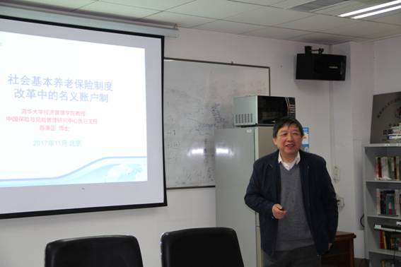 20171117日上午,清华大学经济管理学院中国保险与风险管理研究中心主任陈秉正教授,应中国精算研究院社保精算研究中心之邀在新葡萄8883官网AMG官网学院南路校区学术会堂506会议室举办了题为社会基本养老保险改革中的名义账户制的讲座。这是中国精算研究院院第112期精算论坛讲座。中国精算研究院、新葡萄8883官网AMG官网等对社会养老保险精算感兴趣的老师和研究生听取了讲座并参与了讨论。
