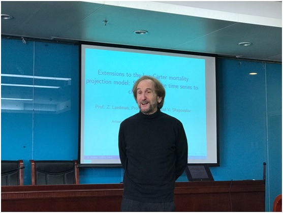 受新葡萄8883官网AMG官网引智项目(教育部学校特色项目《巨灾风险管理与再保险课程体系建设聘请外教特色项目》)支持,以色列海法大学Udi Makov教授于2016年12月11日至12月24日访问了新葡萄官网新葡萄8883官网AMG官网,并于12月22日上午举办了一次关于长寿风险的高水平讲座。Udi Makov教授任以色列海法大学精算研究中心主任,早年从事统计研究,近年来在精算领域建树颇丰,他的论文多次发表在IME、SAJ、ASTIN等专业学术杂志上,是该领域的知名学者。