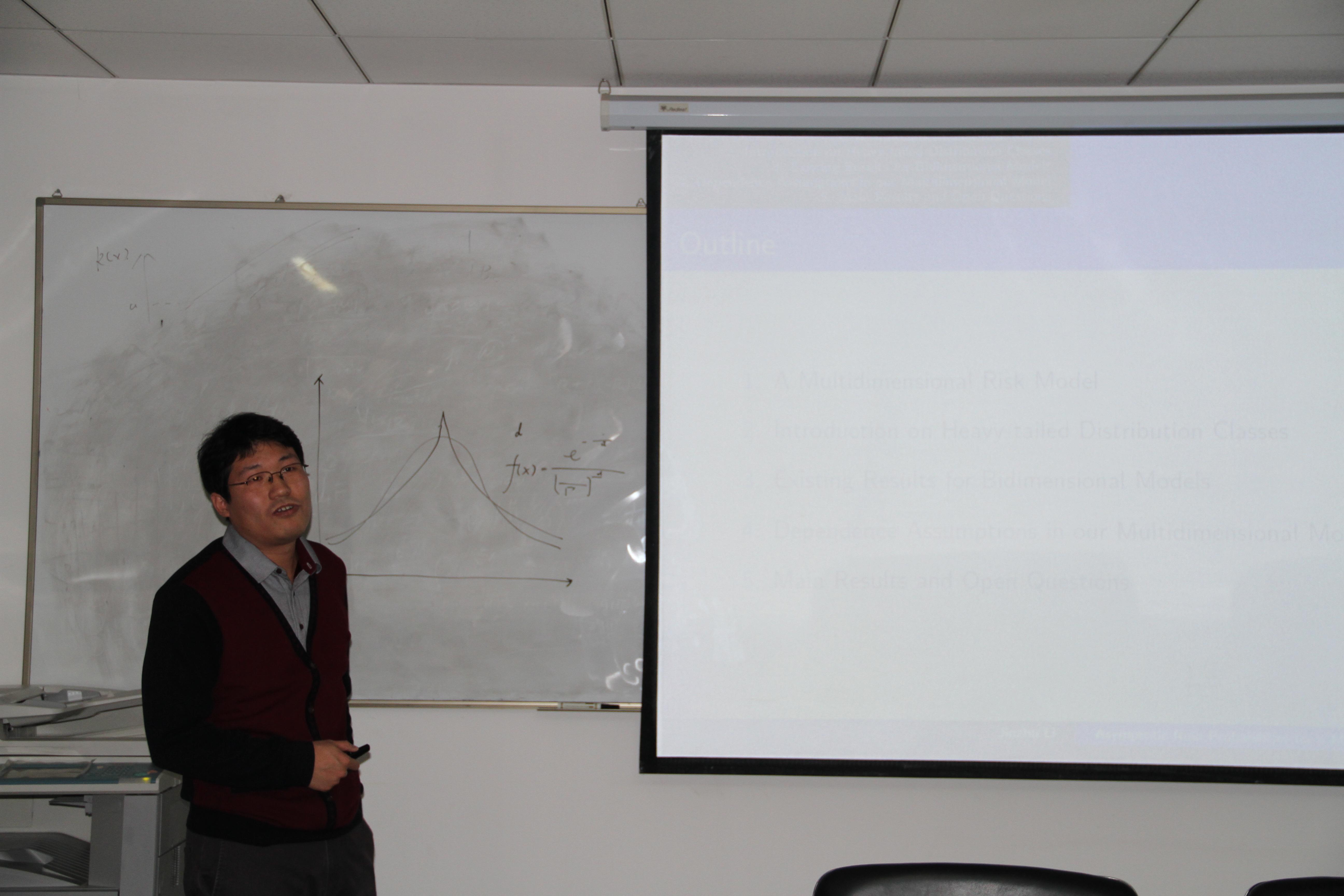 2015年11月12日,南开大学李津竹副教授受邀来新葡萄官网做了多维更新风险模型下的破产概率渐进理论的学术报告。