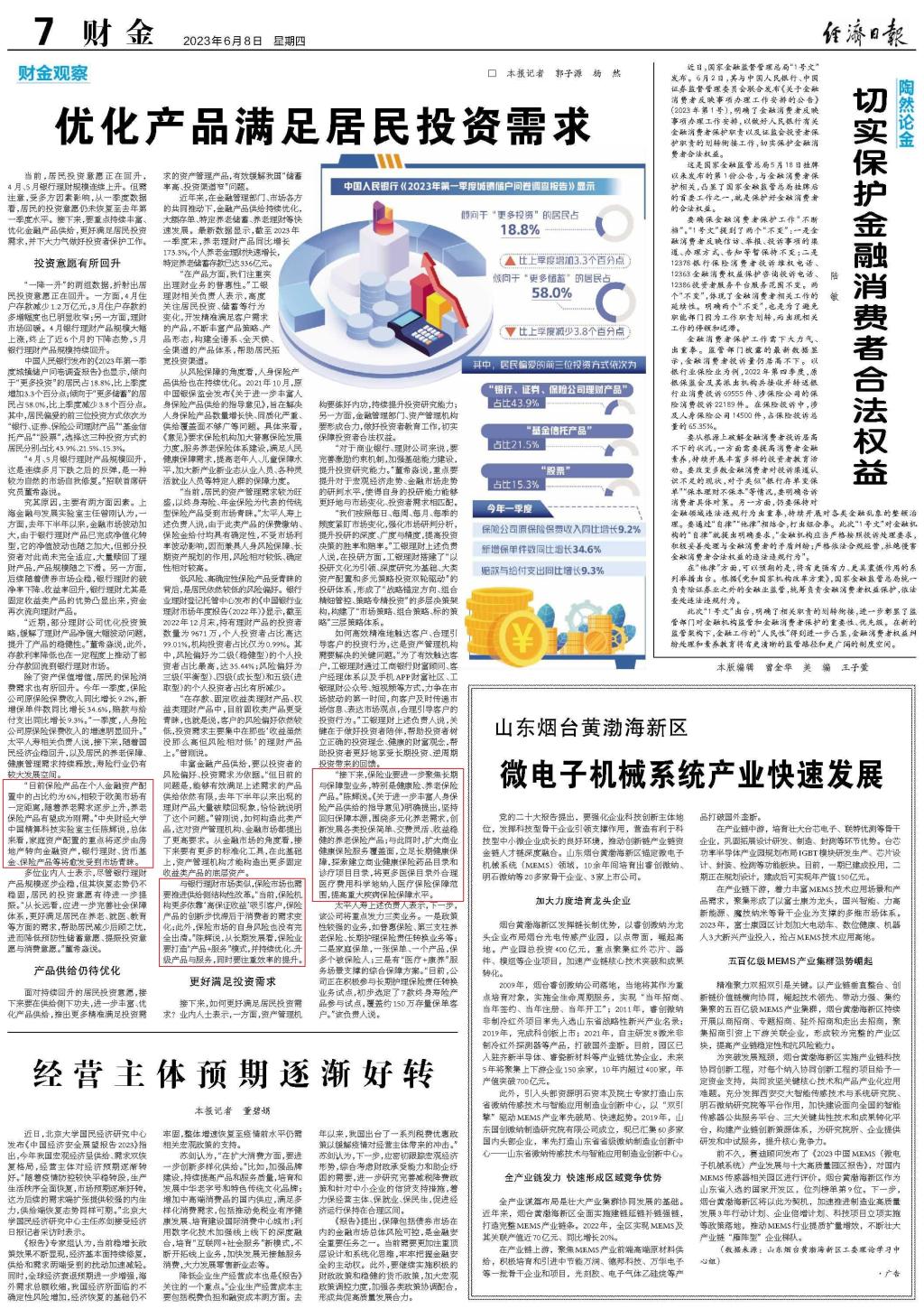 2023年4月3日,中国人民银行发布《2023年第一季度城镇储户问卷调查报告》。陈辉在接受《经济日报》采访时表示,目前保险产品在个人金融资产配置中的占比约为6%,相较于欧美市场有一定距离,随着养老需求逐步上升,养老保险产品有望成为刚需。总体来看,家庭资产配置的重点将逐步由房地产转向金融资产,银行理财、货币基金、保险产品等将愈发受到市场青睐。与银行理财市场类似,保险市场也需要供给侧结构性改革。当前,保险机构更多依靠“高保证收益”吸引客户,保险产品的创新步伐滞后于消费者的需求变化;此外,保险市场的自身风险也没有完全出清。从长期发展看,保险业要打造“产品+服务”模式,并持续优化、升级产品与服务,注重效率的提升。接下来,保险业要进一步聚焦长期与保障型业务,特别是健康险、养老保险产品。