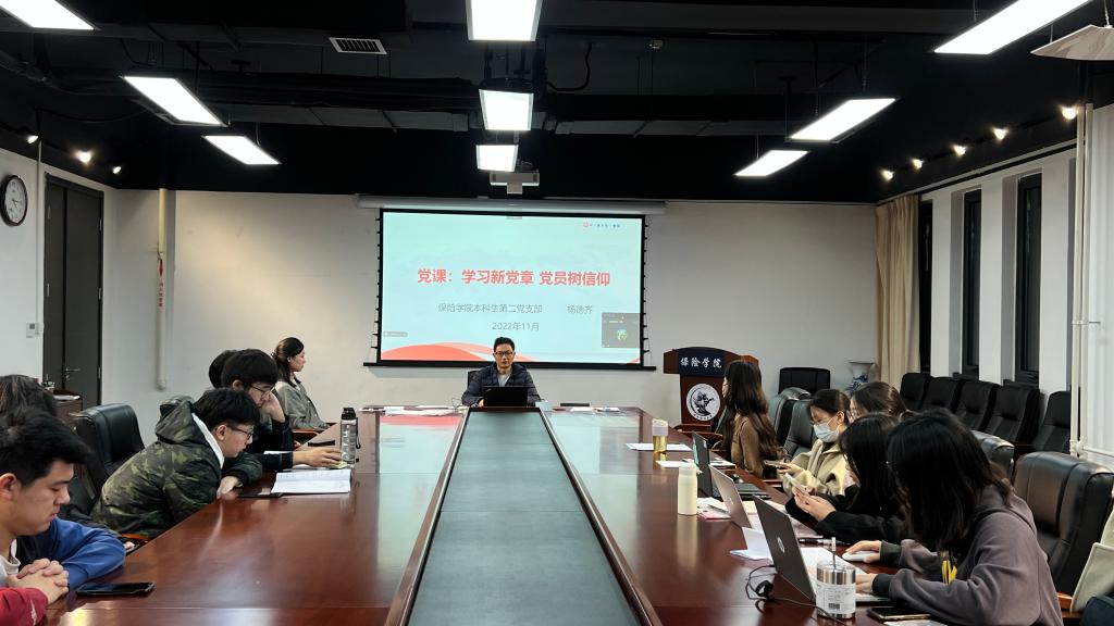 为学习贯彻党的二十大精神,深刻领悟党章修改的重要意义与精神内核,牢固树立党员意识信仰,加强本科毕业生党员的党性修养,2022年11月2日,新葡萄8883官网AMG官网本科生第二党支部召开“学习新党章 党员树信仰——支部书记讲党课”活动,由支部书记杨德齐老师讲授党课,党支部全体党员参加。