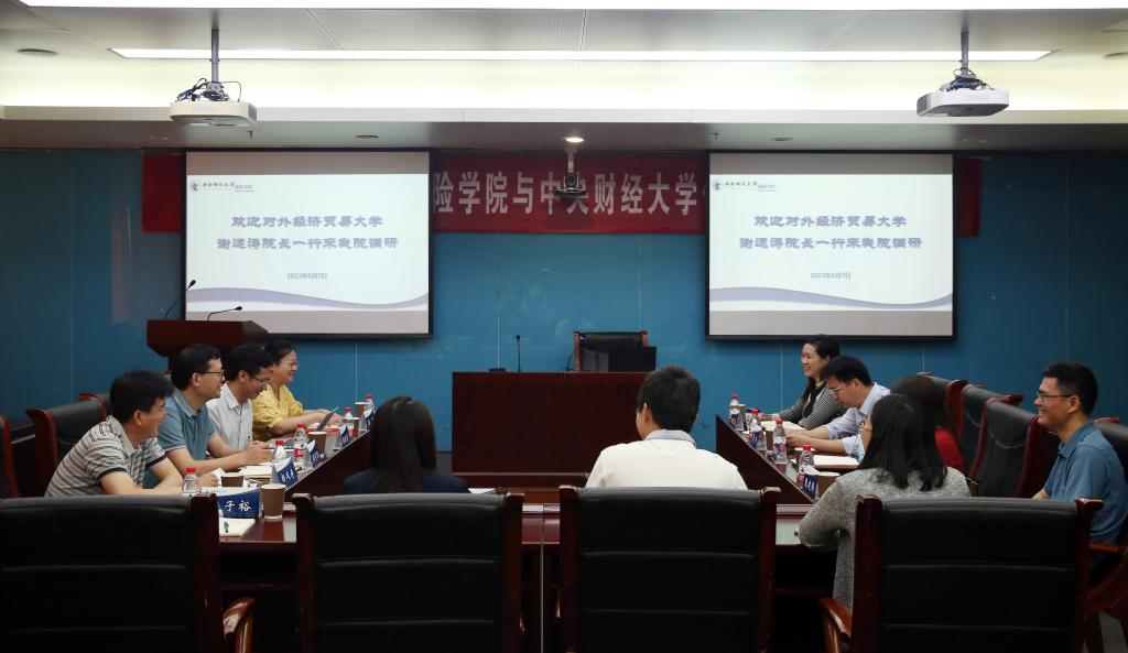 新葡萄8883官网AMG官网院长周桦、副院长王丽珍、保险系系主任马冰、精算系系主任刘敬真、社保系系主任张建伟、教学与科研管理办公室主任胡悦,以及对外经济贸易大学新葡萄8883官网AMG官网院长谢远涛、院长助理孙守纪、专职教师杨风寿、陈茵、周娟、教务秘书饶子裕,参加了学科发展调研座谈。