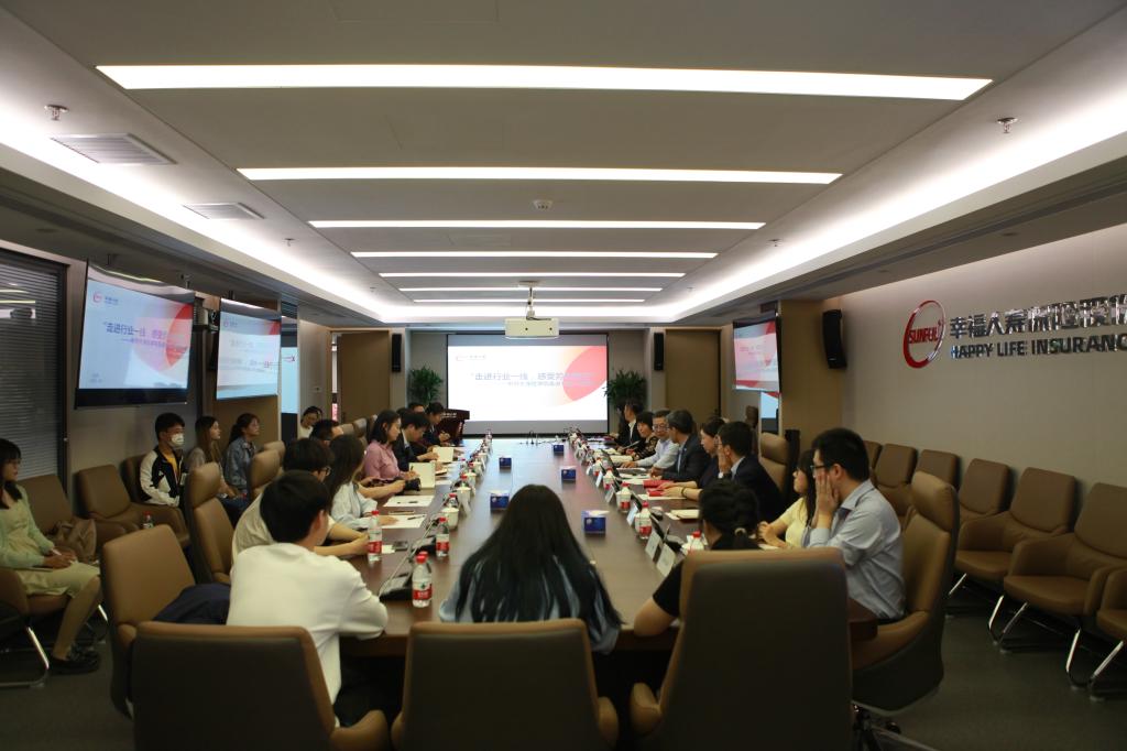 为积极响应教育部、学校要求,深入开展“访企拓岗促就业”行动,2023年5月9日下午,新葡萄8883官网AMG官网院长周桦、副院长郑苏晋、党委副书记吴越、辅导员及学生代表一行走访了幸福人寿保险股份有限公司。本次活动也是新葡萄8883官网AMG官网党委开展学习贯彻习近平新时代中国特色社会主义思想主题教育,深入用人单位一线开展调查研究、攻坚克难推动学院发展的重要活动之一。幸福人寿董事长王慧轩、总裁廖定进、人力资源部总经理叶向峰、总经理助理陈伟明、风险管理部总经理王燕、产品部王慧心、个险营销部王琨出席了交流会。