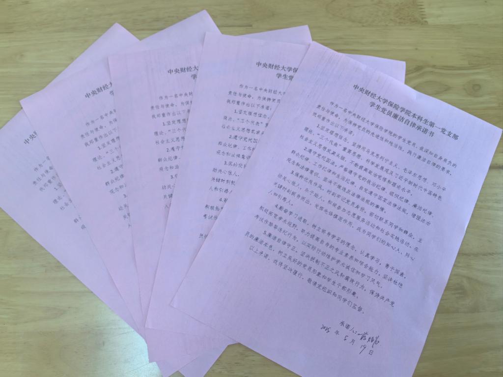 为进一步强化教育效果,党支部组织学生党员签署《党员廉洁自律承诺书》。《承诺书》中列明学生党员廉洁自律条款,要求每位党员郑重承诺将严格遵守党的纪律和规定,自觉抵制各种诱惑和腐败行为,始终保持清正廉洁的政治本色。承诺书不仅是对学生党员约束和提醒,更是责任与担当。签署承诺书的学生党员纷纷表示,将严格遵守承诺,自觉接受监督,以廉洁自律的实际行动践行对党的庄严承诺,在同学中发挥模范带头作用,带动身边的人共同营造风清气正的良好氛围。